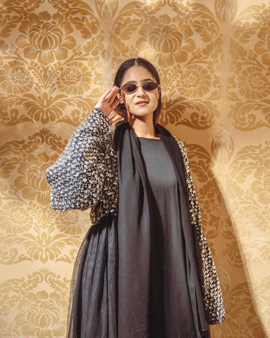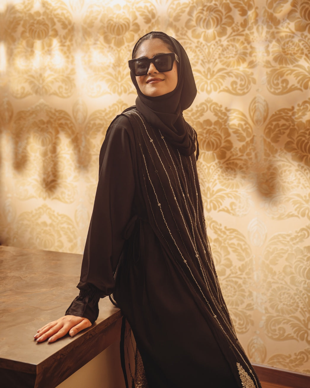 Zaina is a statement abaya designed for grand celebrations and formal evenings. Featuring a richly hand-embroidered silver...