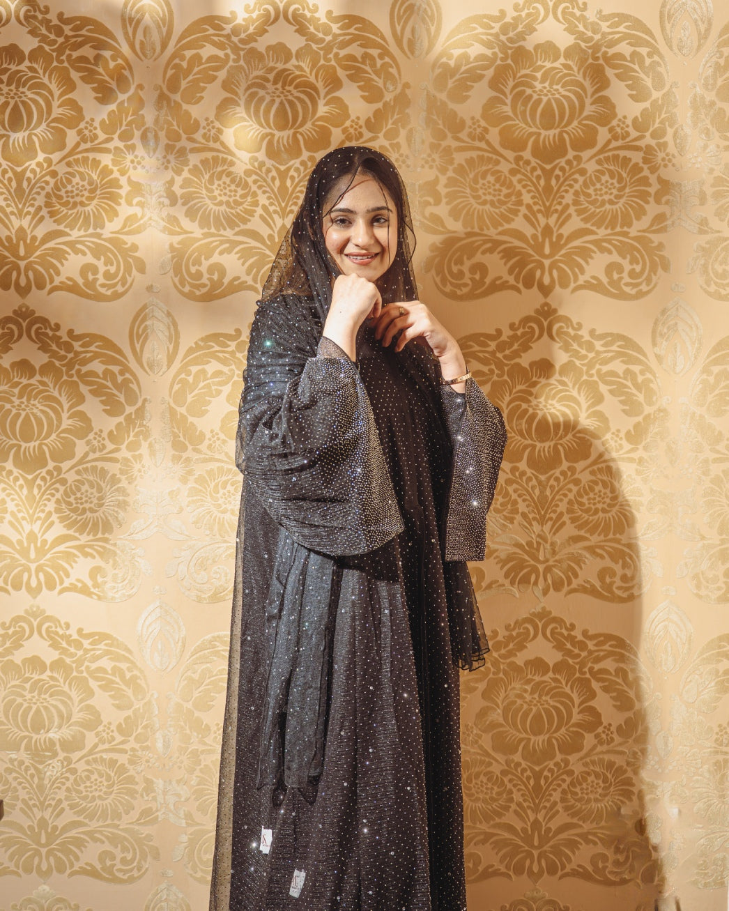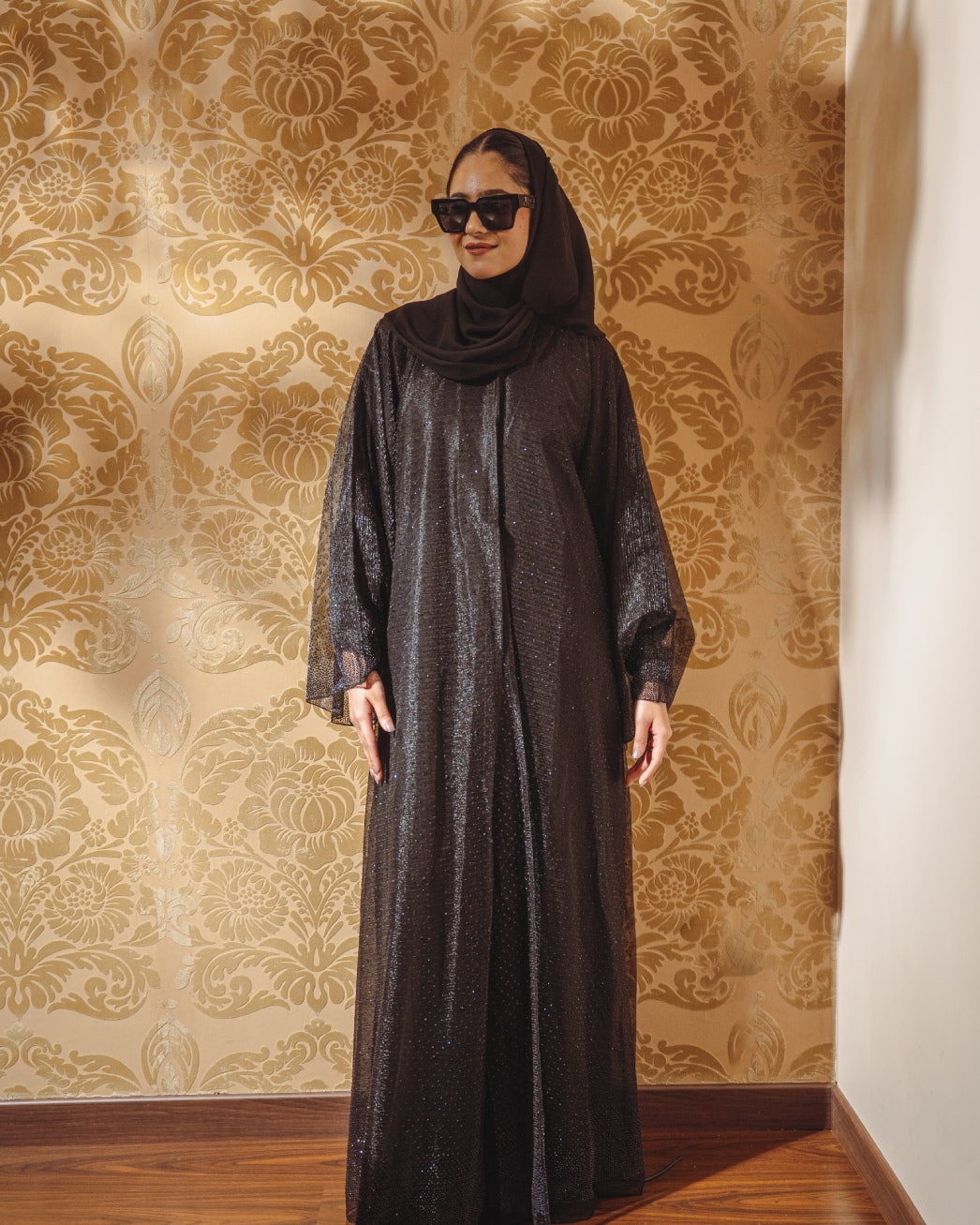 Jewels is an opulent net abaya designed to shimmer with quiet sophistication. Crafted with all-over stone embellishment....