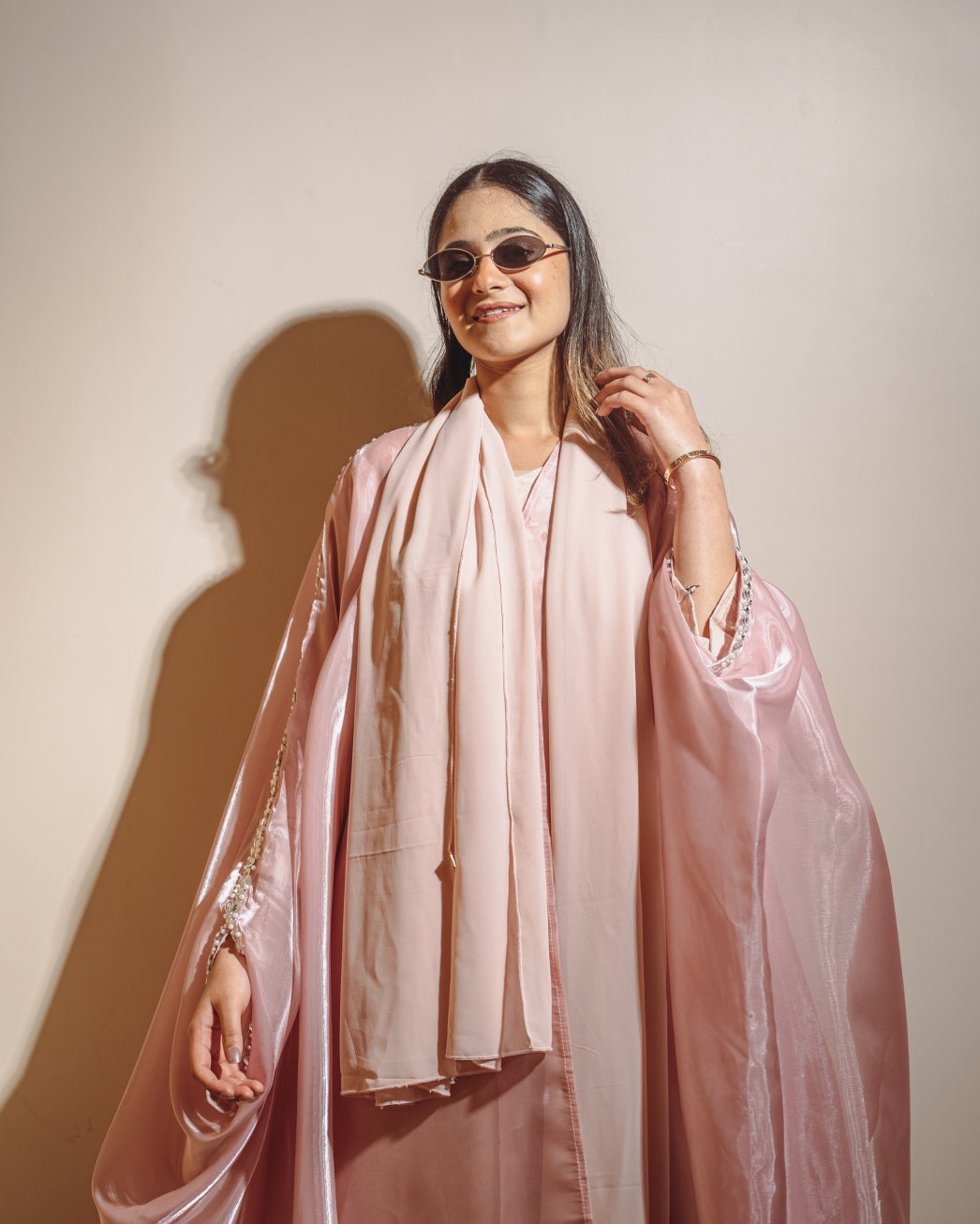 Hana is a refined kaftan-style abaya crafted in sheer pink organza, designed for soft impact and...