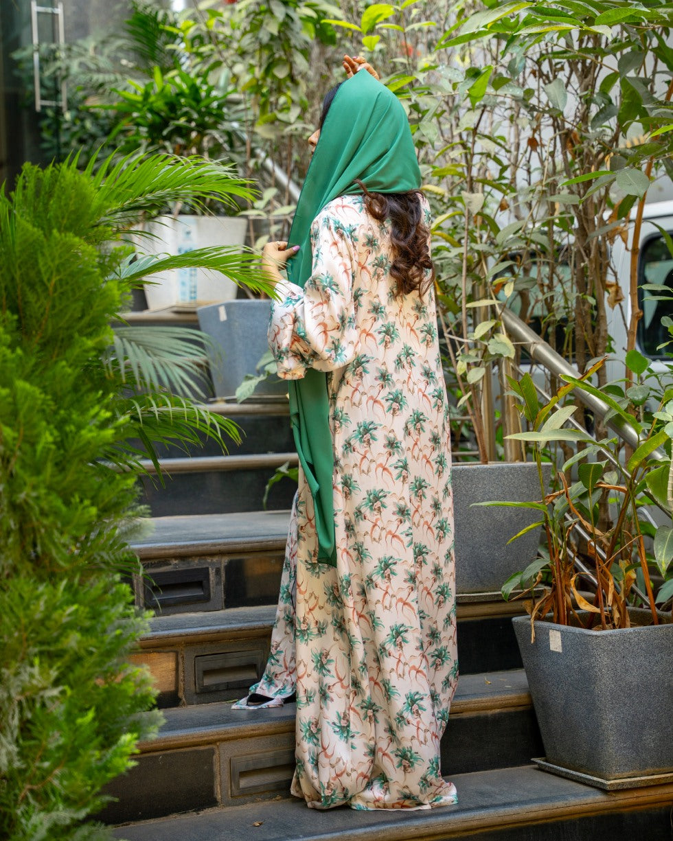 Nargis is a refreshing printed abaya designed in a soft cream base with elegant palm-inspired motifs,...